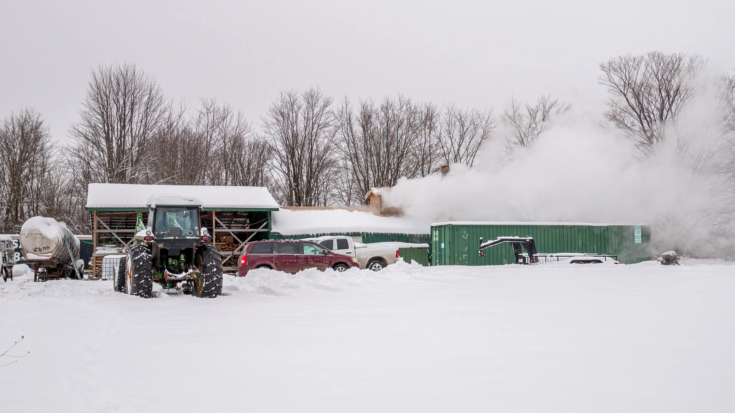 COPENHAGEN— It was a slow and sleepy snow that fell on Saturday morning outside of Champion Peak Maple, covering the cars in the small, plowed lot, and the fields and maple woods behind.